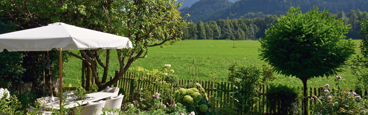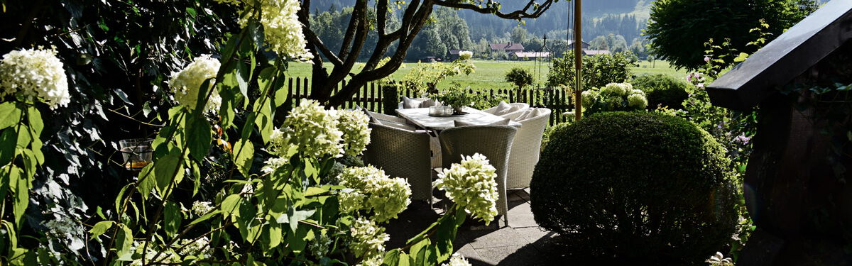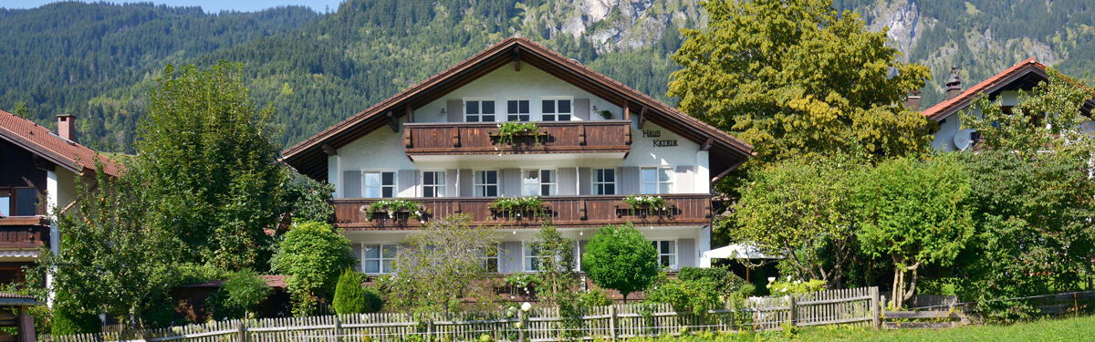Unser Gästehaus liegt in ruhiger Ortsrandlage von Bad Hindelang – sonnig und mit herrlichem, freien Blick auf blühende Wiesen und das Ostrachtaler Bergpanorama.